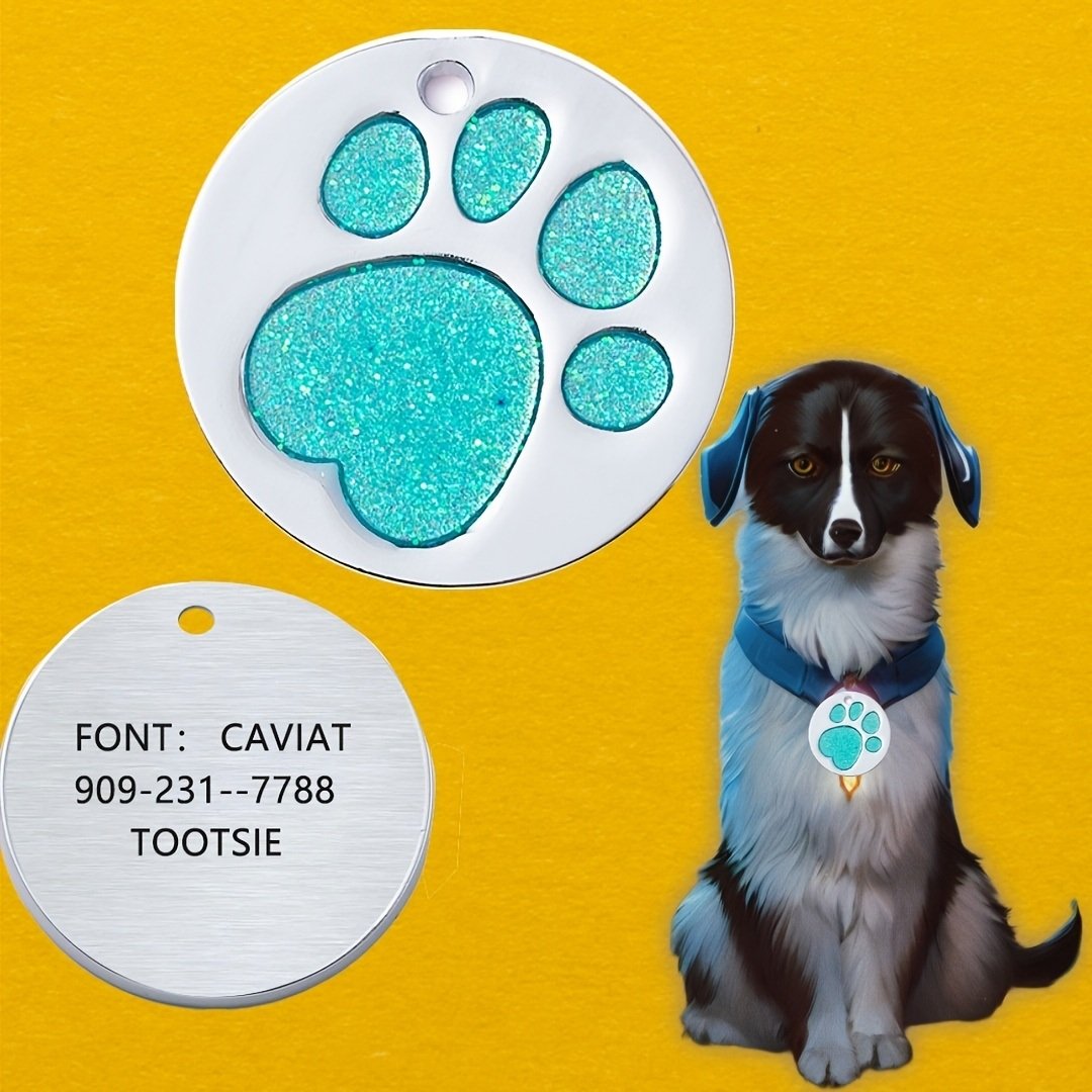 Personalized Dog Tags; Engraved Footprints Cat Tags; Anti-lost Round Pet ID Tags For Dogs & Cats